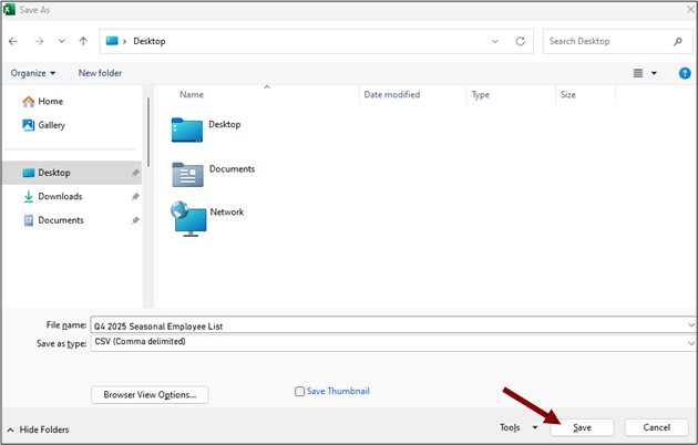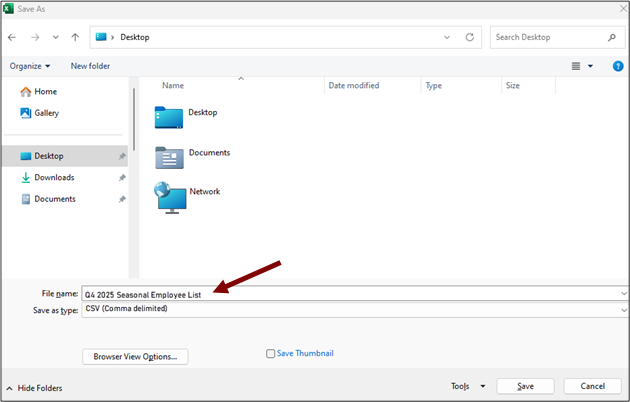 You will submit your seasonal employee list using a file upload, which allows you to provide all your employee data in a single file. Seasonal employee lists must be received on or before the last day of the month following the end of the calendar quarter.